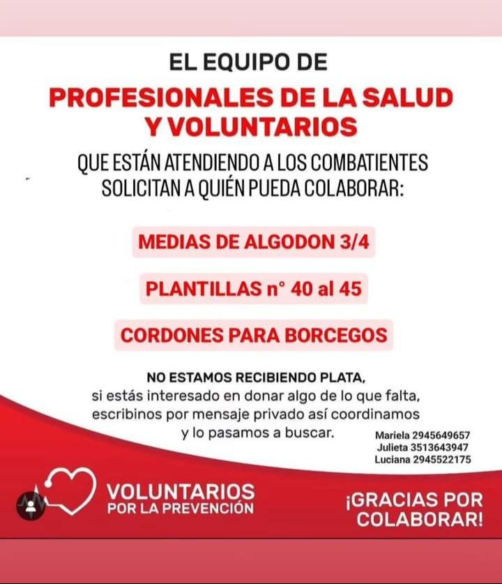 "Por ahora están todos bien y esperemos que siga así. Agradecemos a la gente que realiza donaciones para poder poner esto en actividad. Pedimos plantillas del 40 al 45; cordones y medias 3/4 de algodón. Eso es lo que más necesitan"