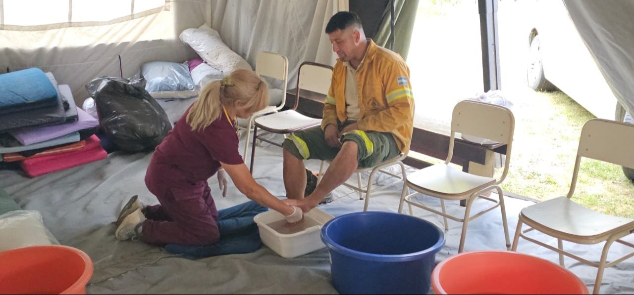 El equipo de profesionales de la salud y voluntarios, es también gran protagonista de todo el operativo en el parque, ya que, es quien asiste constantemente a quienes arriesgan sus vidas frente a frente contra el fuego para salvar nuestros bosques.