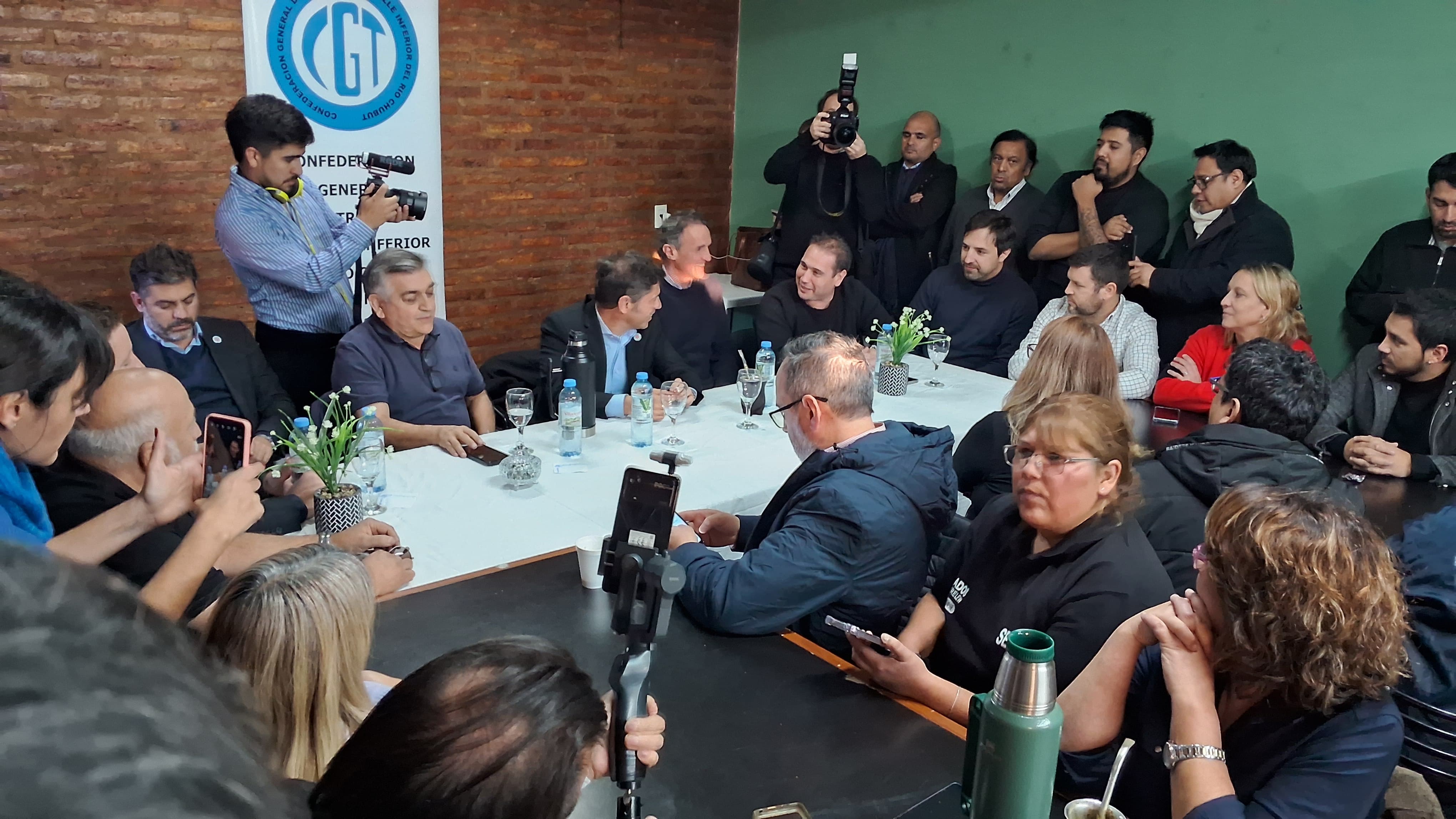 Luego se trasladó a Trelew donde se encuentra reunido en la sede de la Asociación Obrera Textil con las cúpulas gremiales y los diputados peronistas Juan Ignacio Pais y Emanuel Coliñir, además de referentes de agrupaciones justicialistas.