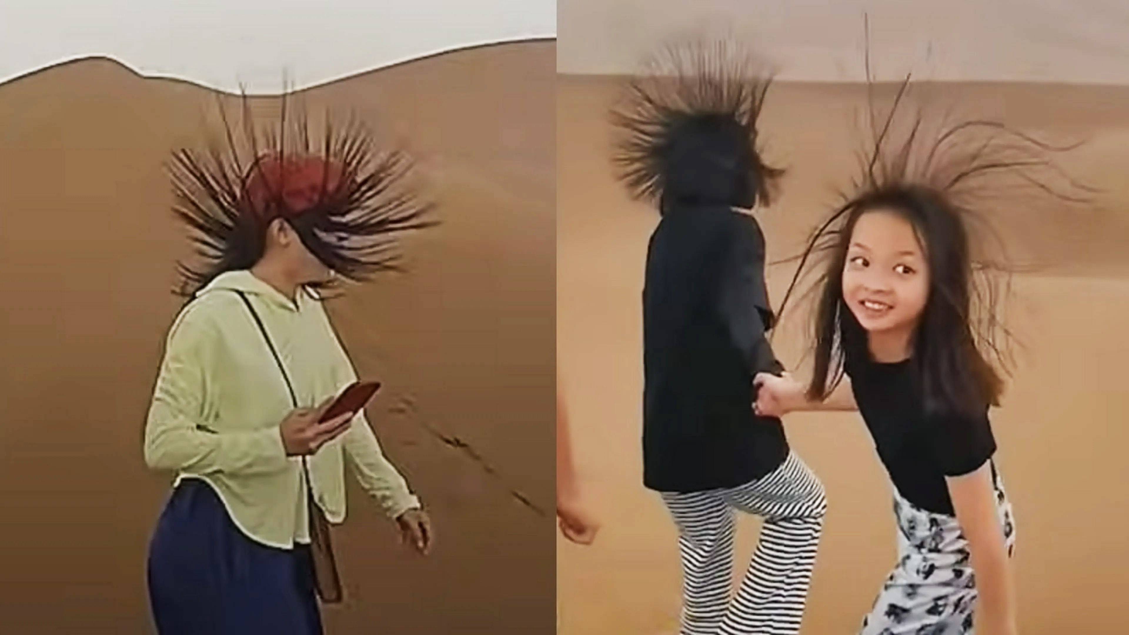 Un sorprendente video, que tiene un par de años, muestra a un grupo de personas a la intemperie en una zona desértica de Mongolia, a las cuales a muchas de ellas se les eriza el pelo como señal de la inminente caída de un rayo. Lo sucedido es un efecto conocido pero muy difícil de registrar, por eso lo valioso de este video como material educativo en la prevención de accidentes en medio de una tormenta eléctrica.