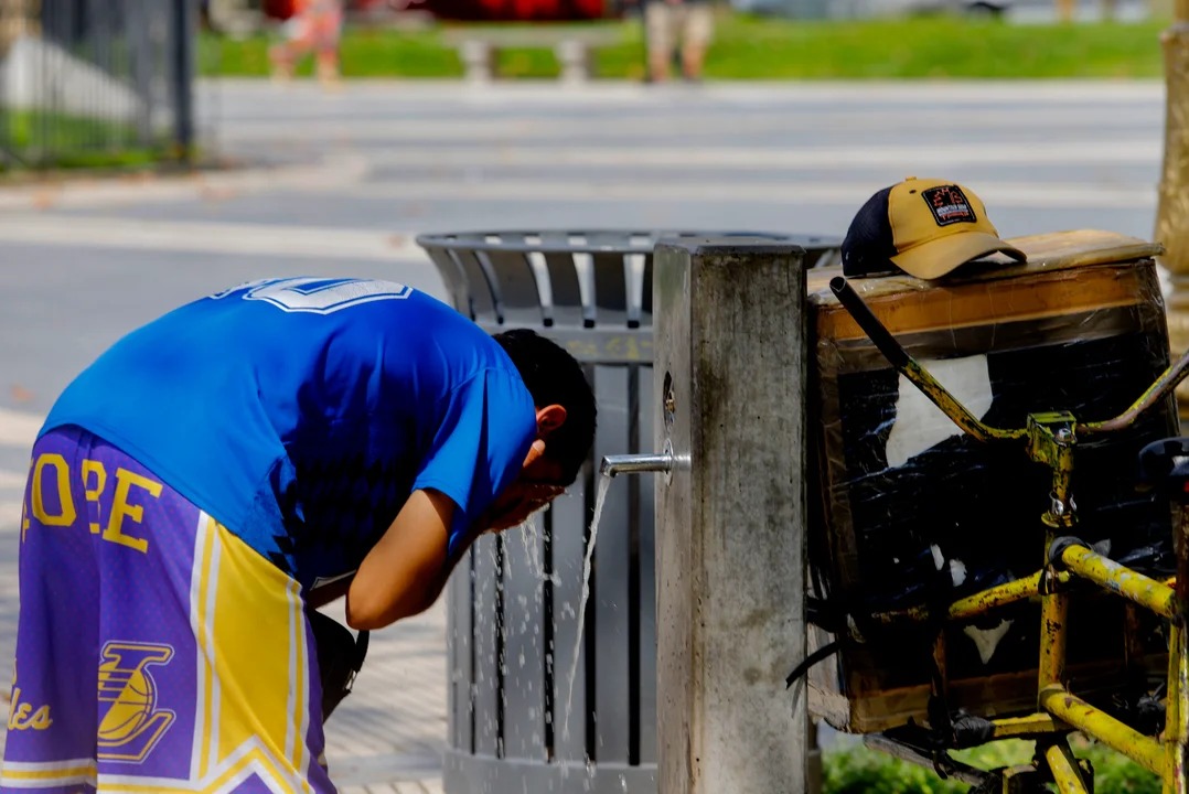 Los vecinos trataban de refugiarse del calor cuando tomaban cantidad abundante cantidad de agua en sus botellas o bebederos en los barrios porteños. Algunos de ellos incluso circulan con un abanico y hasta con paraguas para protegerse del clima agobiante.
