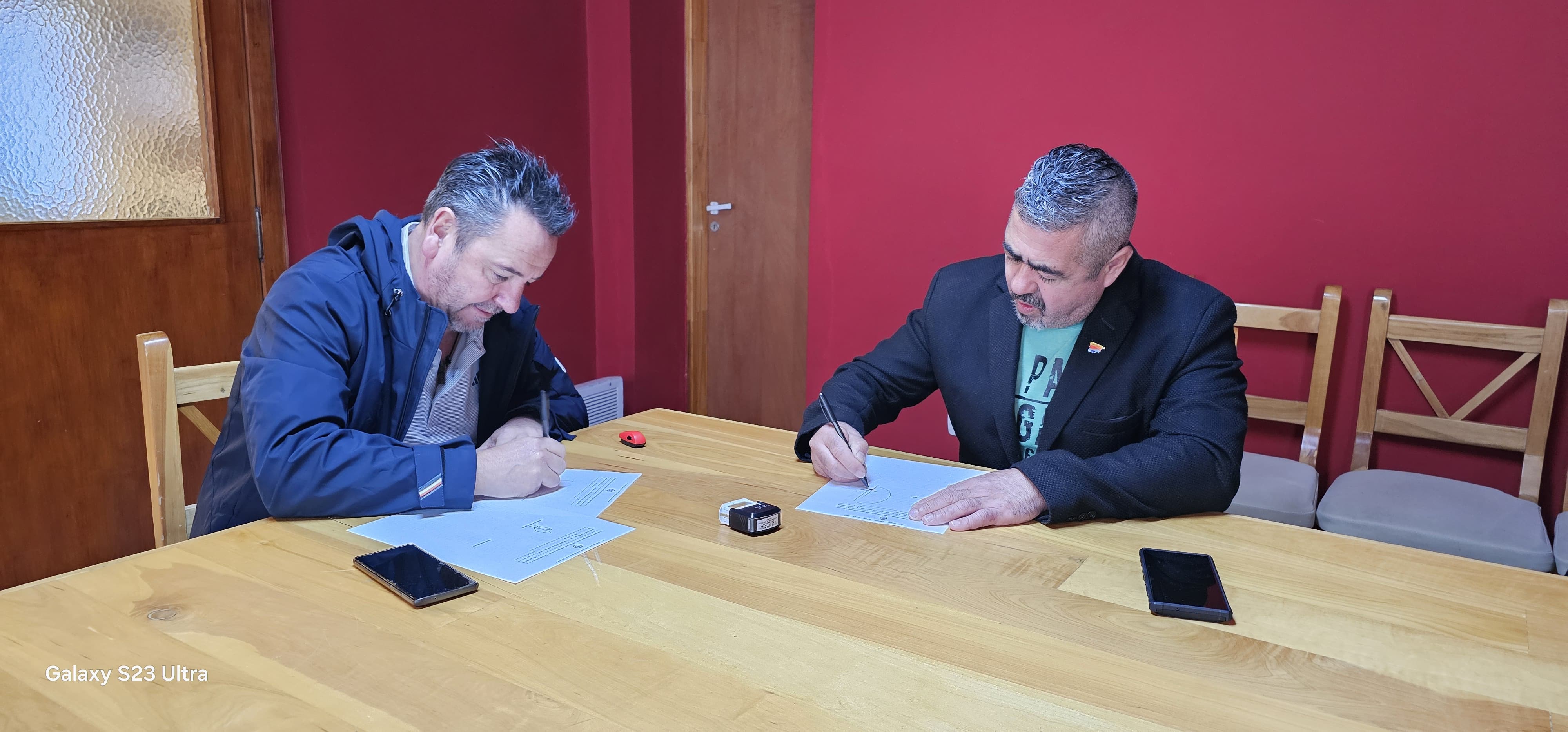 El ministro de Seguridad y Justicia de Chubut, Héctor Iturrioz junto al jefe de la Policía del Chubut, comisario general Andrés García y al Intendente de Corcovado, Ariel Molina, firmaron un convenio para la creación de un Centro de Monitoreo en Corcovado.