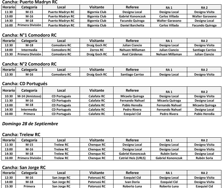 El restante partido del sábado será entre Puerto Madryn RC y Bigornia, desde las 16hs, con referato de Daniel Barchetta. Tanto el "Lobo Marino" como el "Yunque" están en mitad de tabla y necesitan ganar para tener aspiraciones de meterse en semifinales y pelear por el título. Vale recordar que Bigo, al ser campeón del Oficial, ya clasificó al Regional 2026y en este Austral se pone en juego el tercer cupo hacia ese certamen. El otro boleto le corresponde a Chenque por ganar el Oficial de la URA.