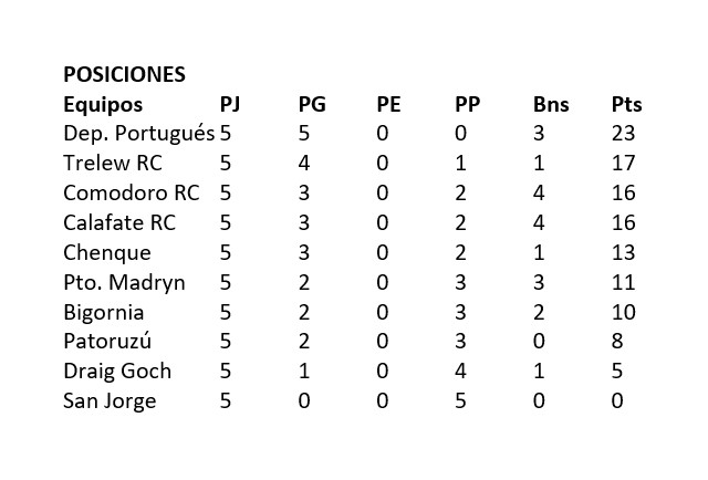 El sábado, se presentará como local el único puntero e invicto que tiene el campeonato, Deportivo Portugués, en condición de local contra Calafate RC (cuarto en la tabla), en un duelo petrolero donde prometen "sacarse chispas", desde las 16hs con arbitraje de Ezequiel Cid.