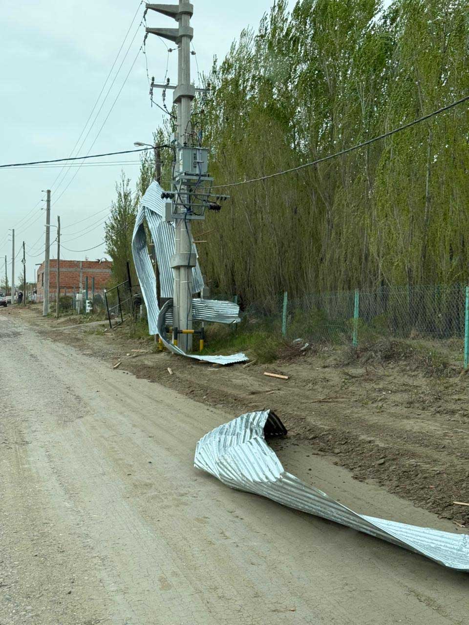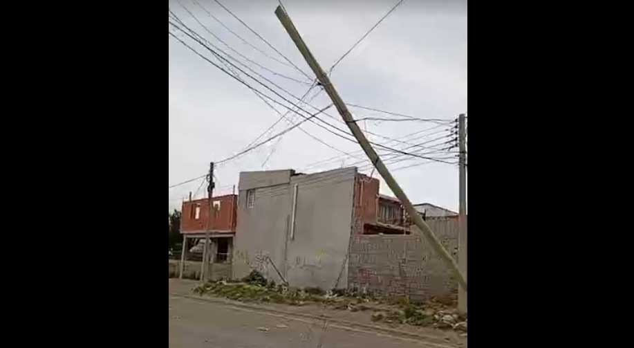 En un video se pueden apreciar como un poste de alumbrado cedió ante los vientos y como techos de chapas quedaron atrapados contra postes de energía eléctrica.