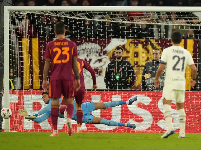 Finalmente, Roma cambió de pateador y el argentino Matías Soulé fue quien se hizo cargo de el tercer penal para Roma en menos de dos minutos.
