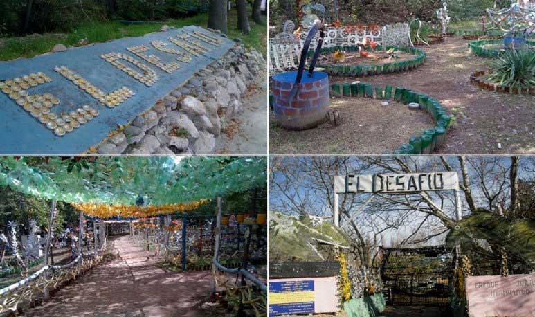 Entre los atractivos se encontraban: gran cantidad de botellas demarcando los senderos, flores artificiales, un letrero con la palabrabienvenidoescrita en 40 idiomas.