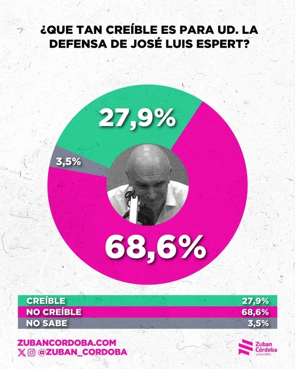 - Defensa poco creíble: La explicación pública que dio el diputado libertario es "no creíble" para el 68,6% de los encuestados. Solo un 27,9% le cree.