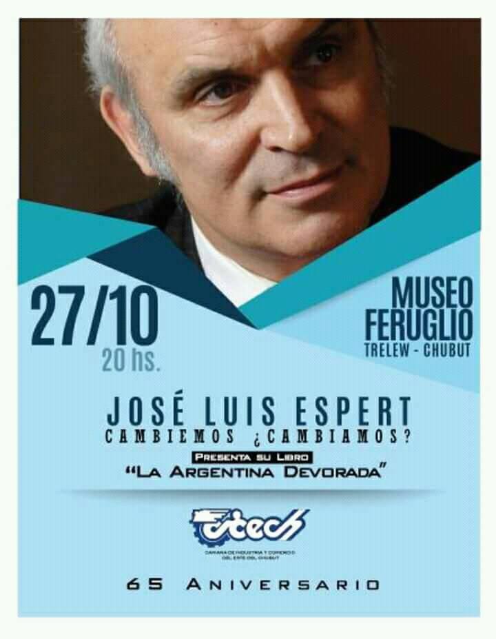 Luego, Espert junto al entonces presidente de la CICECH, Rubén Villagra, y el economista local César Pailacura -impulsor de la visita de Espert-, mantuvieron una reunión con el director de un diario local (que, por supuesto, no es Jornada), para culminar con la presentación de su libro “La Argentina devorada”, una actividad organizada por la CICECh en el marco del 65º aniversario de fundación, que se desarrolló en el anfiteatro del Museo Feruglio.