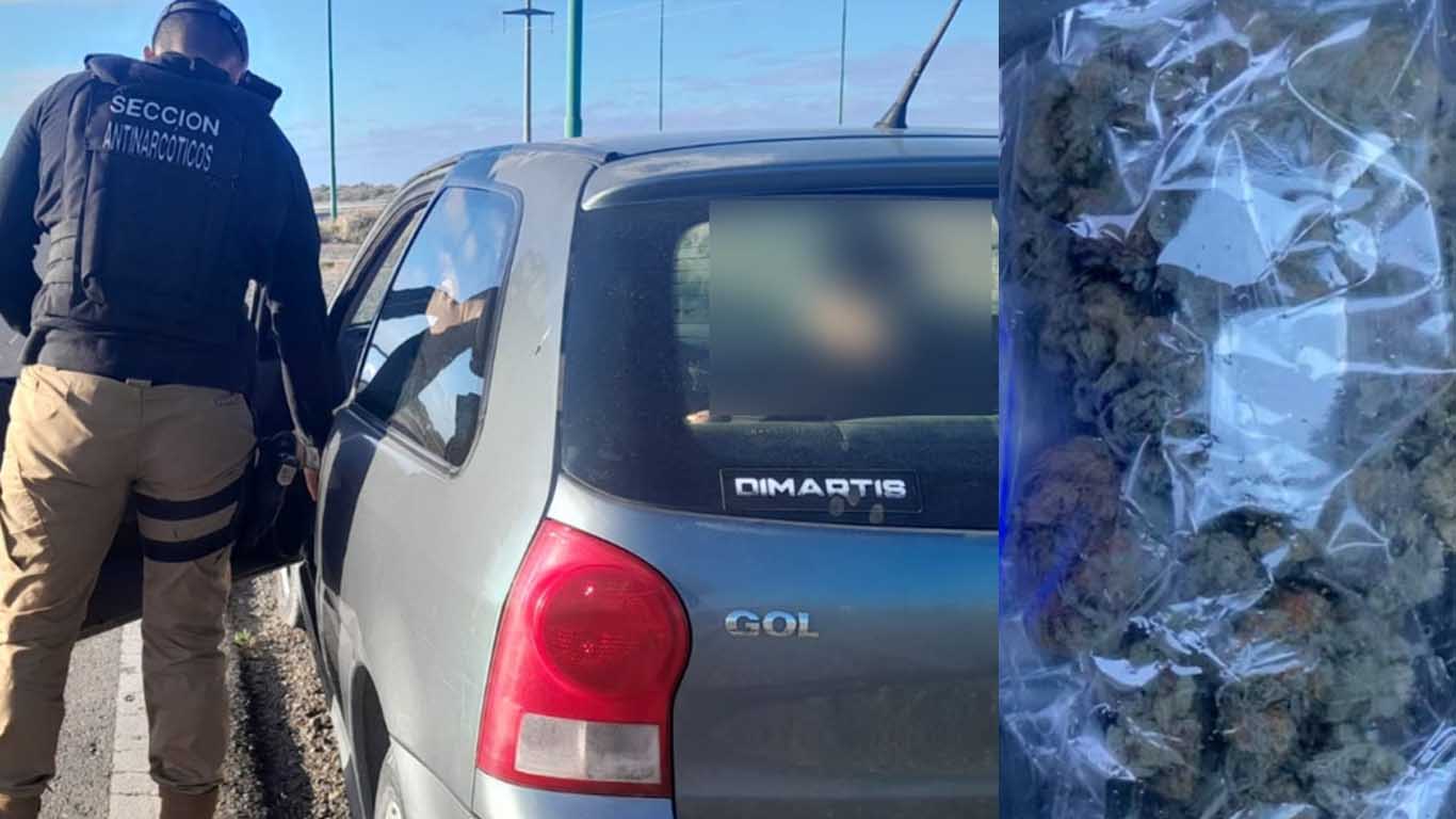 Este sábado a las 17 horas, personal de la Sección Antinarcóticos Rawson que se encontraba realizando control vehicular y de personas en puesto policial del complejo Magagna, en el puesto 604, procedió, durante un control de rutina, a identificar un vehículo Volkswagen Gol.
