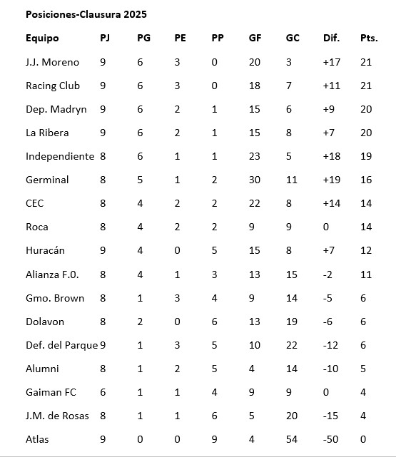 16.00 - Germinal vs. Independiente. Cancha: El Fortín. Árbitro: Diego Álvarez.