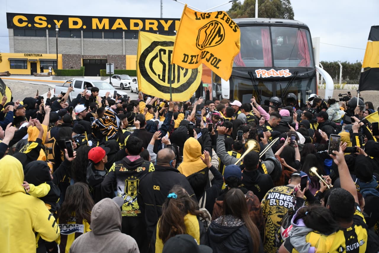Con una emotiva despedida, antes de las 16de este jueves, el plantel se dirigió desde las instalaciones de la institución rumbo al Aeropuerto El Tehuelche con un gran banderazo de parte de los hinchas del "Depo".