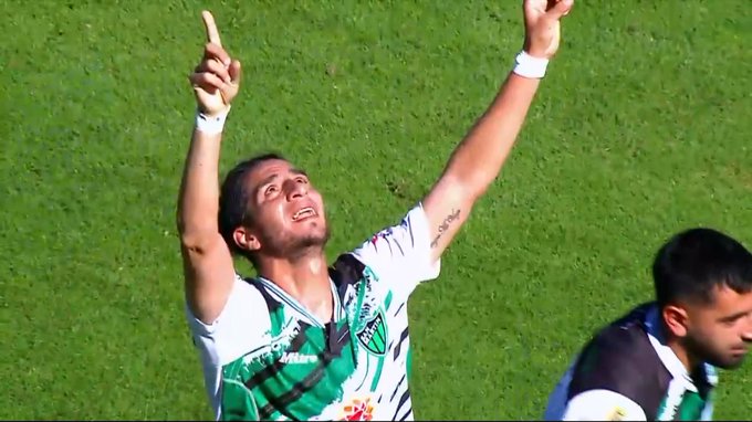 "PARA VOS MIGUEL". El Pulpo González se emocionó luego de marcar el gol de la victoria de San Martín de San Juan ante San Lorenzo, miró hacía el cielo y le dedicó el festejo a RUSSO. pic.twitter.com/PsEDVsoUdI