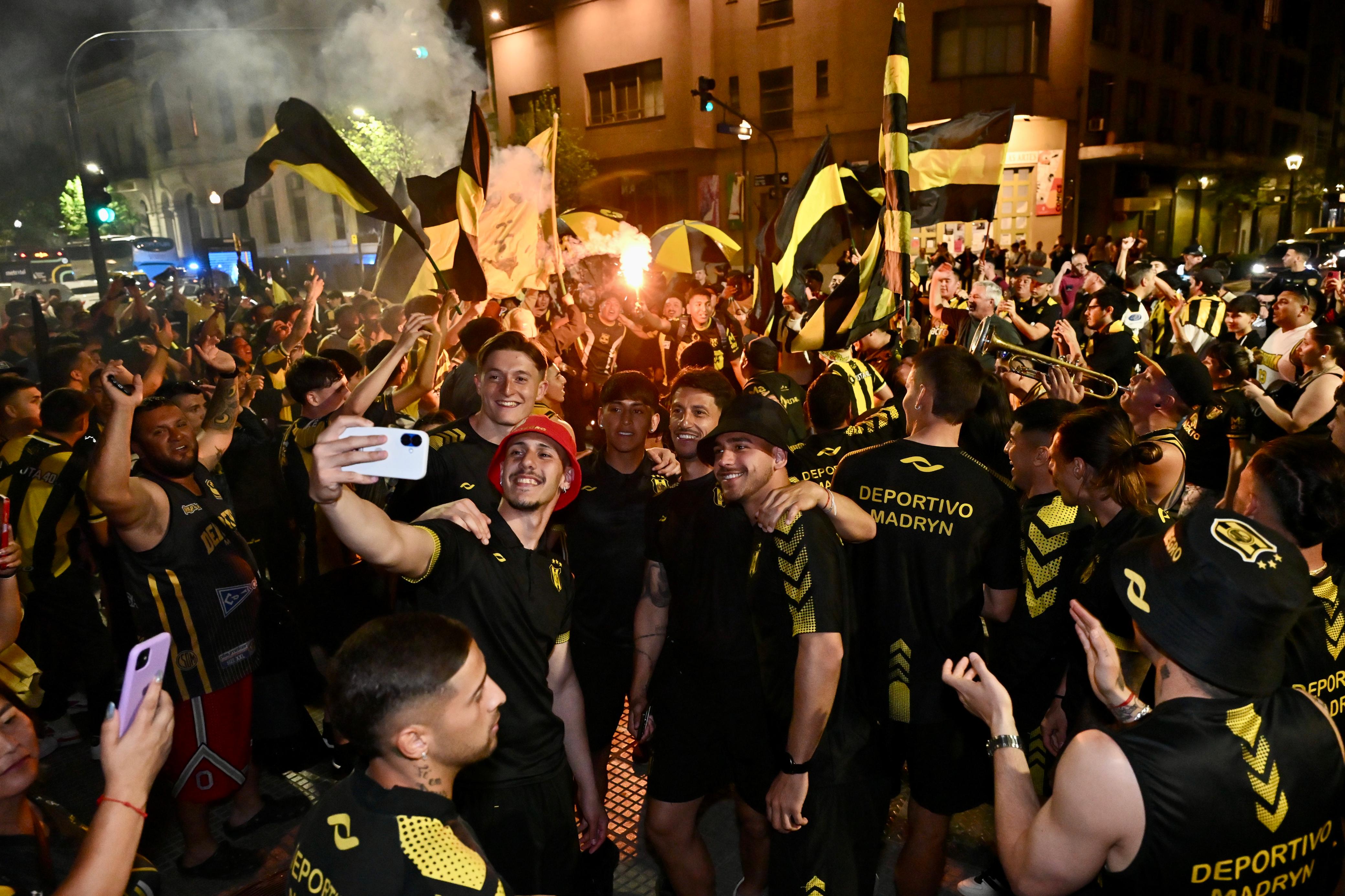 En la tarde de este feriado de viernes, el grueso de hinchas y allegados al Deportivo Madryn que ya están en CABA hicieron una demostración de cariño y confianza al plantel con un banderazo multitudinario en la esquina de Maipú y Córdoba, en pleno microcentro porteño.
