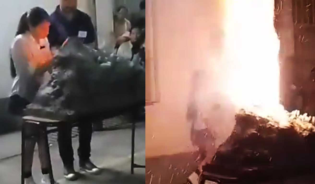 La explosión se produjo durante la demostración de un experimento que simulaba la erupción de un volcán. Un video registrado en el lugar muestra cómo, en cuestión de segundos, la situación se descontroló: un estruendo violento, comparable a la de un artefacto de pirotecnia o bien una bomba casera, dispersó fragmentos de metal y restos del material como esquirlas, alcanzando a numerosos asistentes.