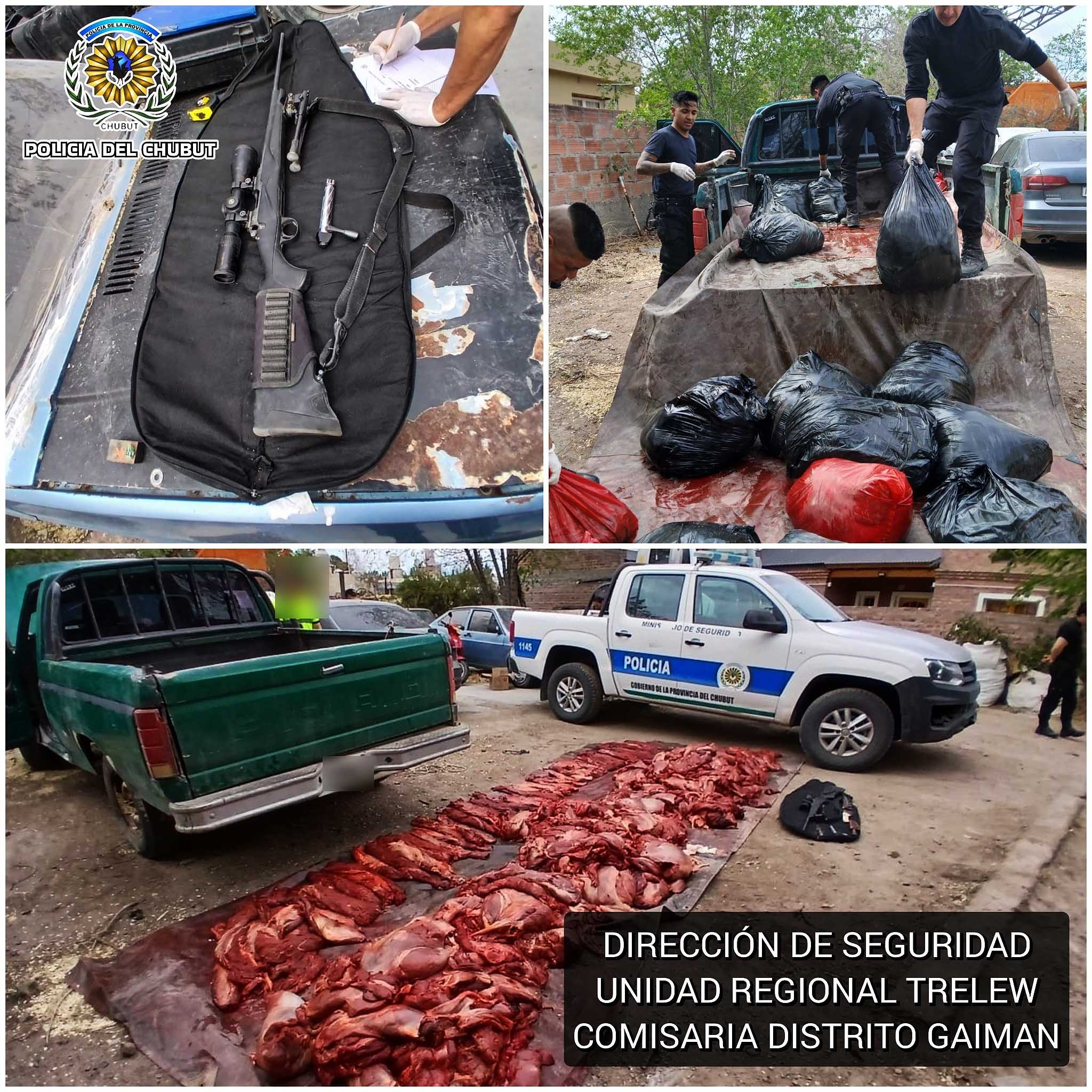 Un gran decomiso de carne de guanaco fue secuestrado este martes por personal policial de la Unidad Regional de Trelew entre Dolavon y Gaiman durante una recorrida de rutina.