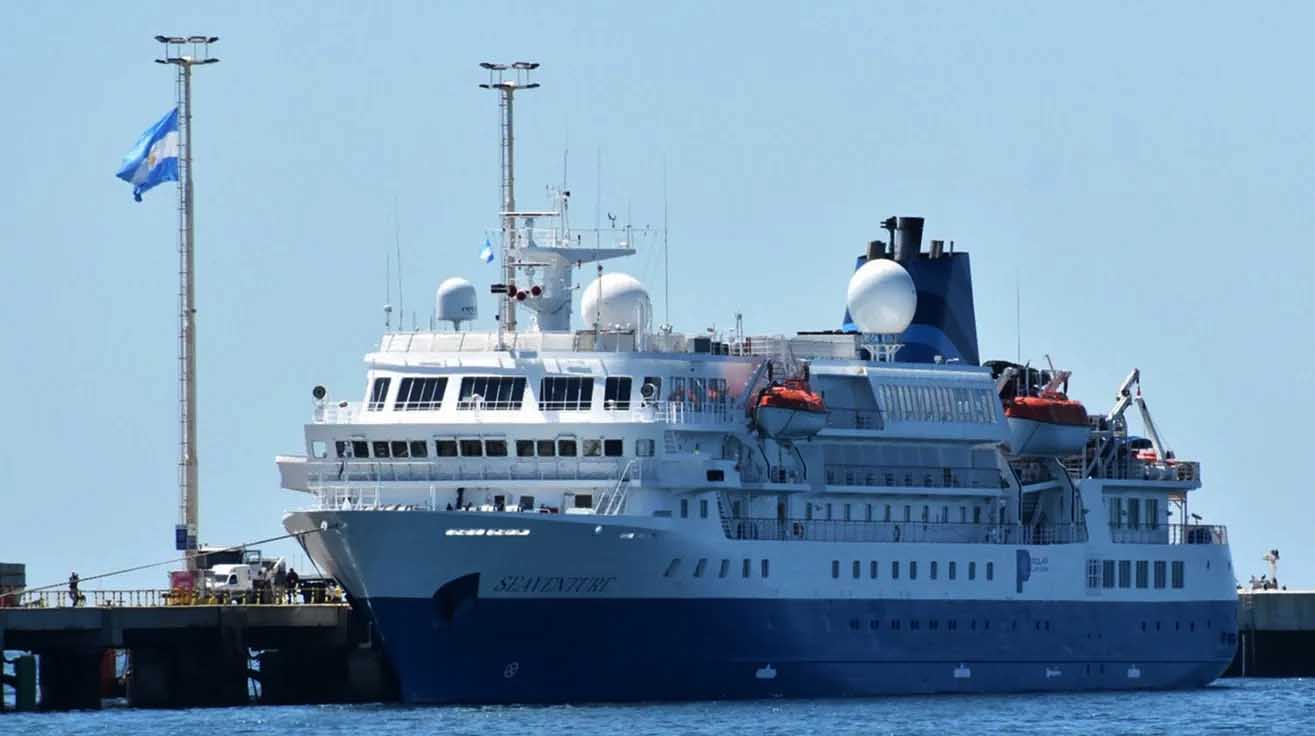 A primera hora del jueves amarró en el sitio norte del muelle Piedra Buena el crucero Seaventure. Se trata de un buque de 112 metros de eslora con capacidad para 140 pasajeros.