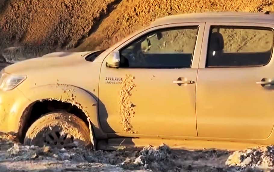En sus redes sociales, los familiares compartieron videos e imágenes de la Toyota 4×4, totalmente encajada en un gredazal.