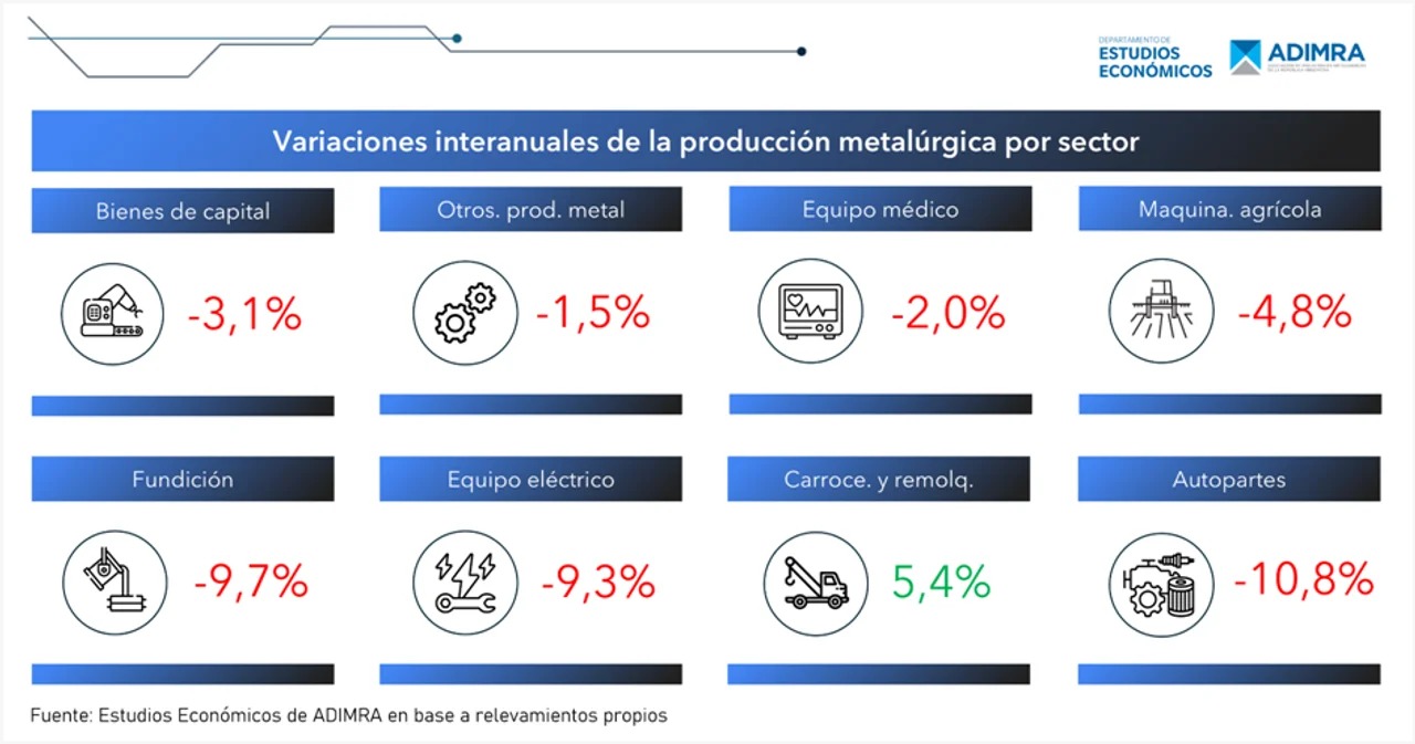 Los datos provienen del informe elaborado por el Departamento de Estudios Económicos de la Asociación de Industriales Metalúrgicos de la República Argentina (ADIMRA).