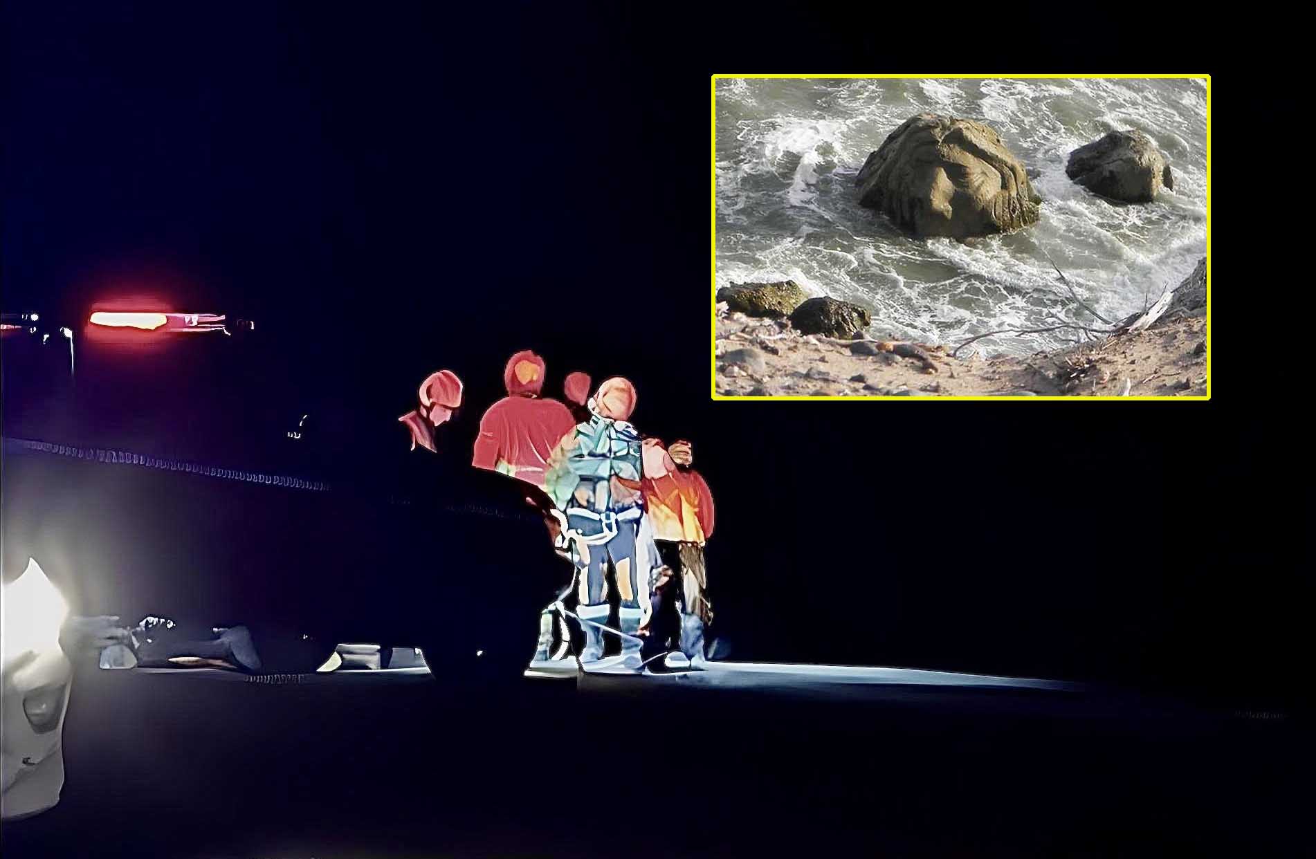 Para lograr hacerse con el cuerpo, los Bomberos de Rawson tuvieron de montar un operativo en la oscuridad y descender con cuerdas por el empinado barranco.