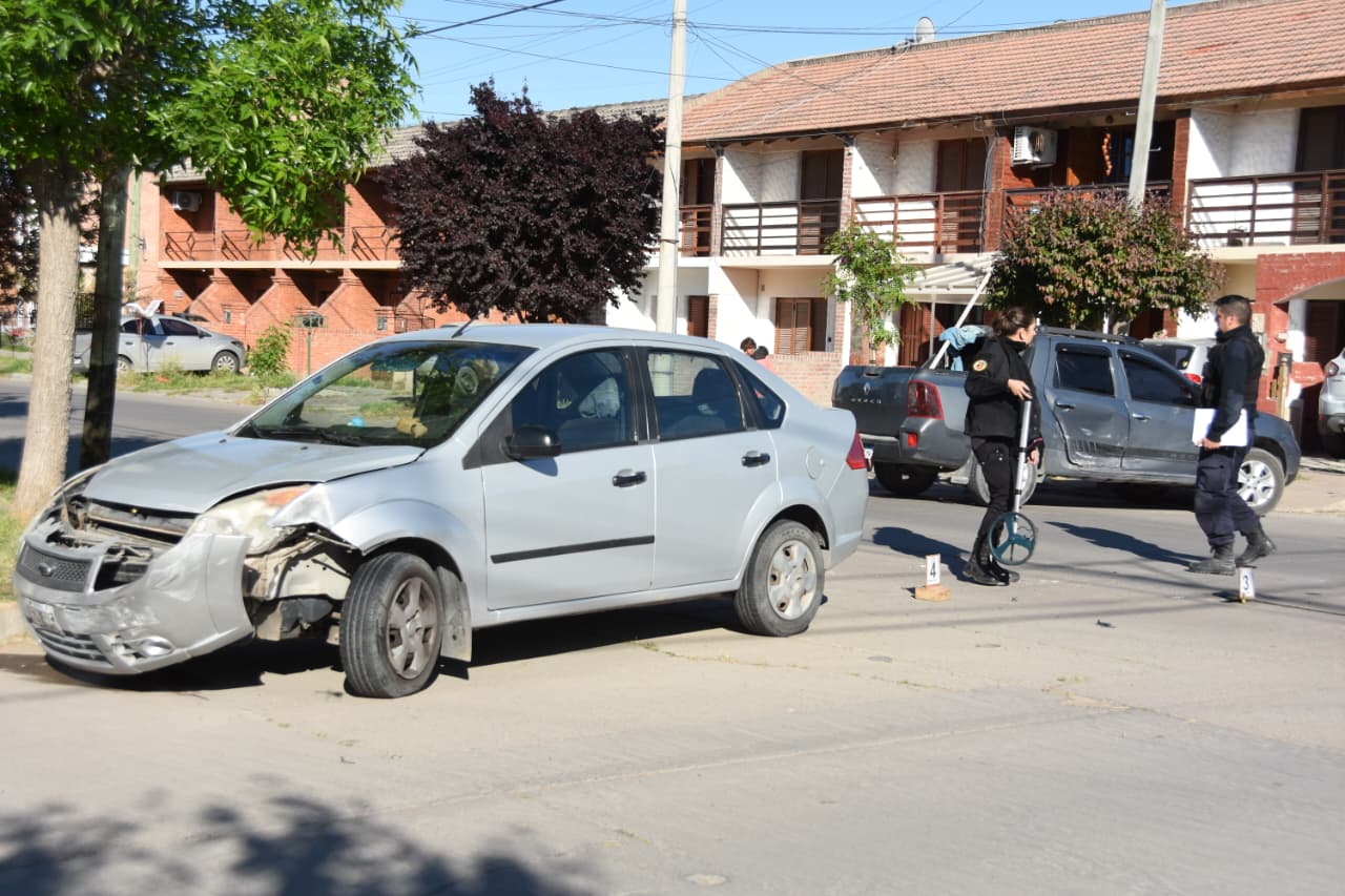 Esta mañana se produjo una fuerte colisión en calle Cabot y Juan Manuel de Rosas de Trelew. Los vehículos involucrados fueron un Ford fiesta y una Renault Oroch.