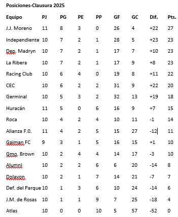 Gaiman FC 5 (Gustavo Schischke-2, Diego Barra, Leonardo Antón y Gastón Vázquez)- Alianza Fontana Oeste 0