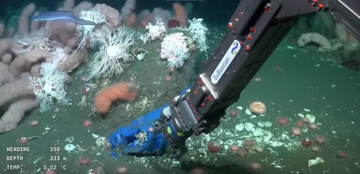 La investigación no solo tiene hitos sobre la vida marina, sino que también deja entrever los cambios sustanciales que genera el comportamiento humano en este tipo de entornos naturales. Es que, en un momento de la transmisión, fue encontrada una bolsa de lona a 332 metros de profunidad. Lamentablemente, entre tantas maravillas también encontramos basura”, explicó Romero.