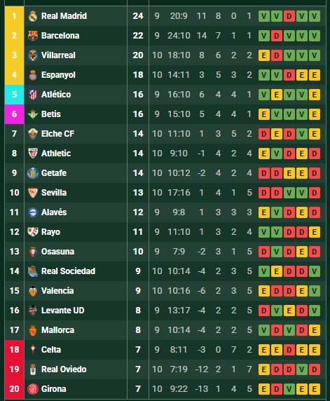 Lajornada 10 de LaLigadejó emociones fuertes, resultados clave y movimientos importantes tanto en la parte alta como baja de la clasificación.Villarrealfue uno de los grandes ganadores del fin de semana alimponerse 2-0 ante Valenciaen el derbi de la Comunidad Valenciana.