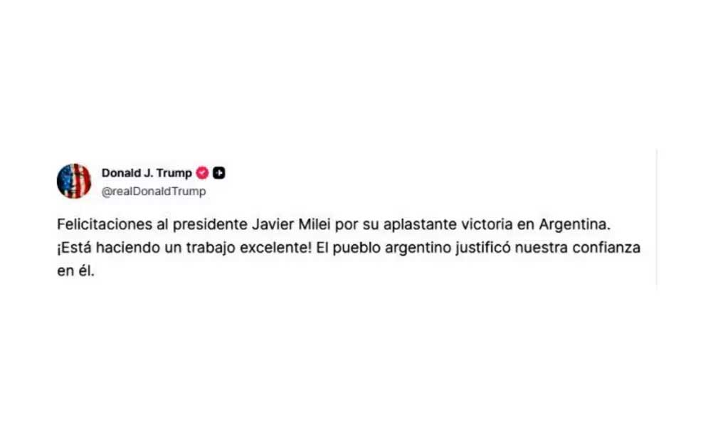 La Libertad Avanza se impuso en 16 provincias, incluyendo Buenos Aires, y relegó a Fuerza Patria al segundo lugar. Tras conocerse estos resultados, Donald Trump felicitó al Presidente luego del triunfo, calificando la victoria como “aplastante” y asegurando: “El pueblo argentino justificó nuestra confianza en él”.
