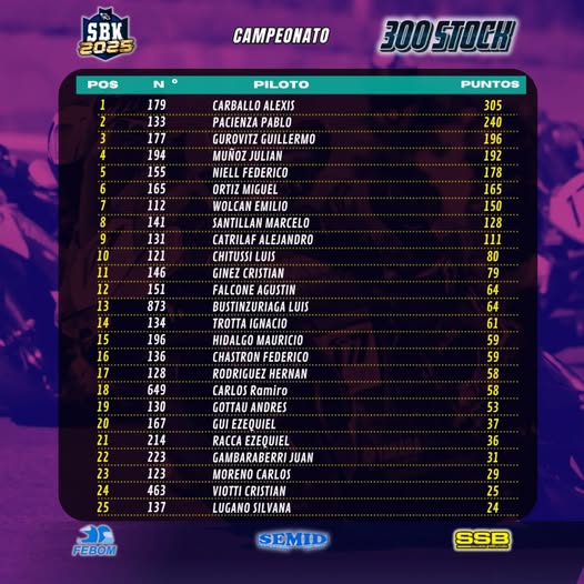 Su consagración como campeón de la Stock Bike 300 del Campeonato de Súper Bike 2025 de la Federación Bonaerense de Motociclismo (FEBOM) convertirían al trelewense en el primer chubutense en lograr un título nacional en el motociclismo de pista.