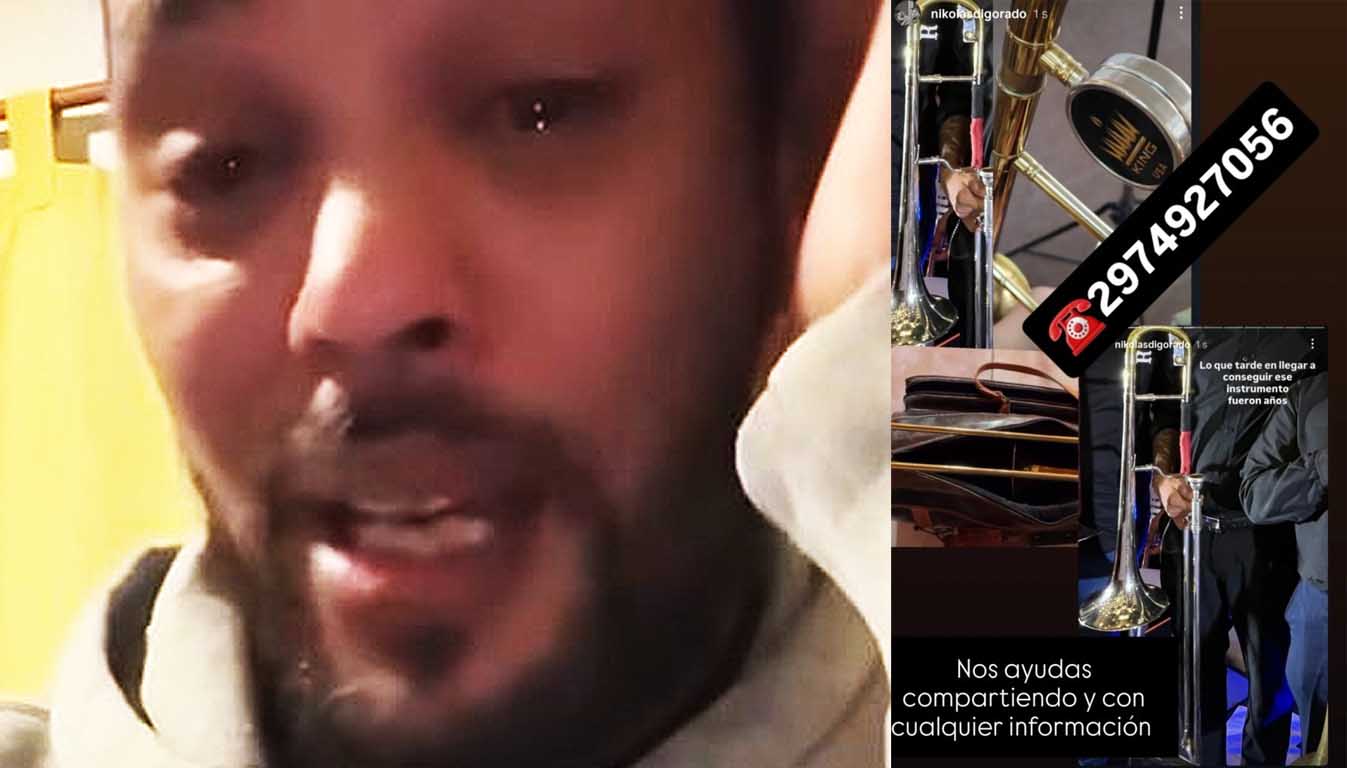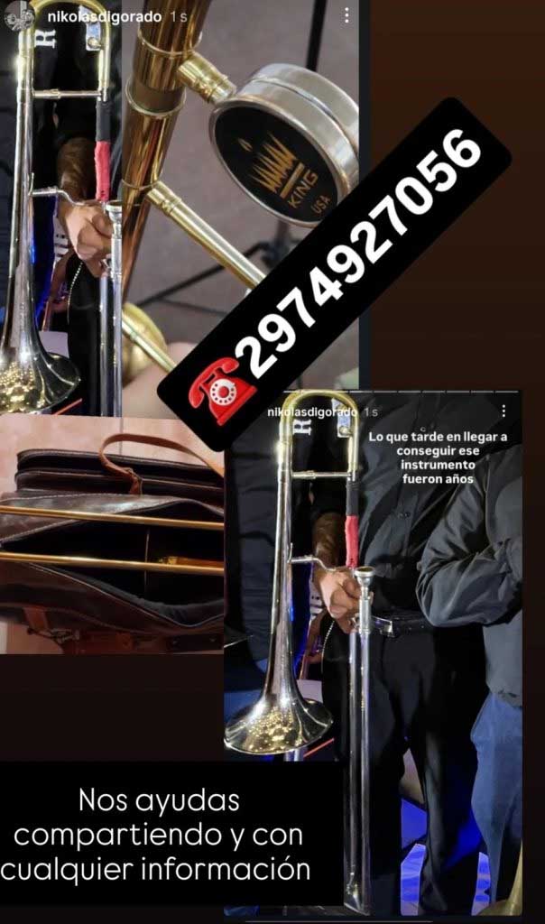 El músico hizo un llamado a la solidaridad de la comunidad. Cualquier información sobre los instrumentos puede ser comunicada al 2974-927056. Cada dato puede significar la recuperación de sus herramientas de trabajo y aliviar un golpe que va más allá del robo material.#