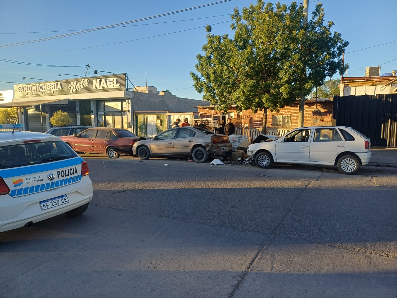 Este domingo luego de las 7, en la intersección de Pellegrini y Rondeau de Trelew, un conductor ebrio chocó a tres autos estacionados. El test de alcoholemia arrojó 2,19 g/L de alcohol en sangre. Conducía un Volkswagen Gol color blanco, en ese lugar, la calle Pellegrini hace una curva por lo que perdió el control de su rodado.