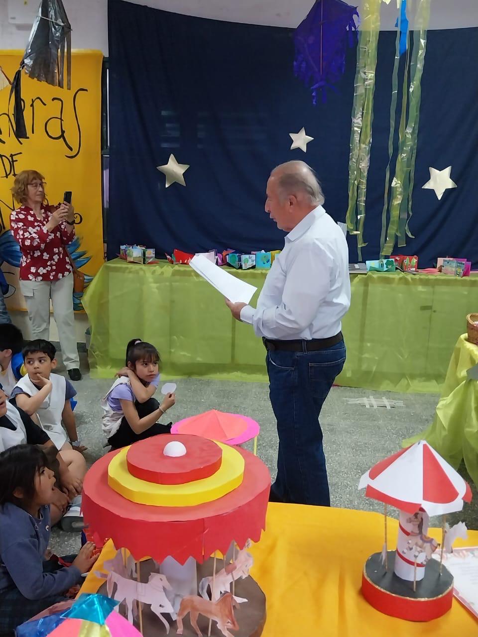 “Ellos han desarrollaron una tarea increíble. Transformaron una de las aulas de la Escuela Nº207, en un mundo imaginario en el que los personajes de mis cuentos y poemas estaban representados en barriletes, calesitas, maquetas, dibujos y murales. Todo el material fue elaborado por los niños, con la ayuda de sus padres, docentes y bibliotecarios”, afirmó el escritor.