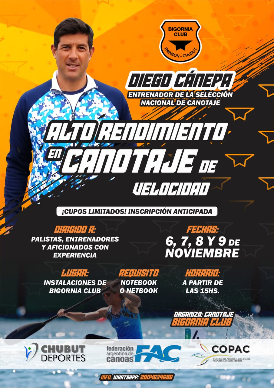 El entrenador de la Selección Argentina de canotaje, Diego Cánepa, realiza un curso intensivo de canotaje en las instalaciones de Bigornia Club, auspiciado por Chubut Deportes, la Federación Argentina de Canoas y la Confederación Panamericana de Canoas.