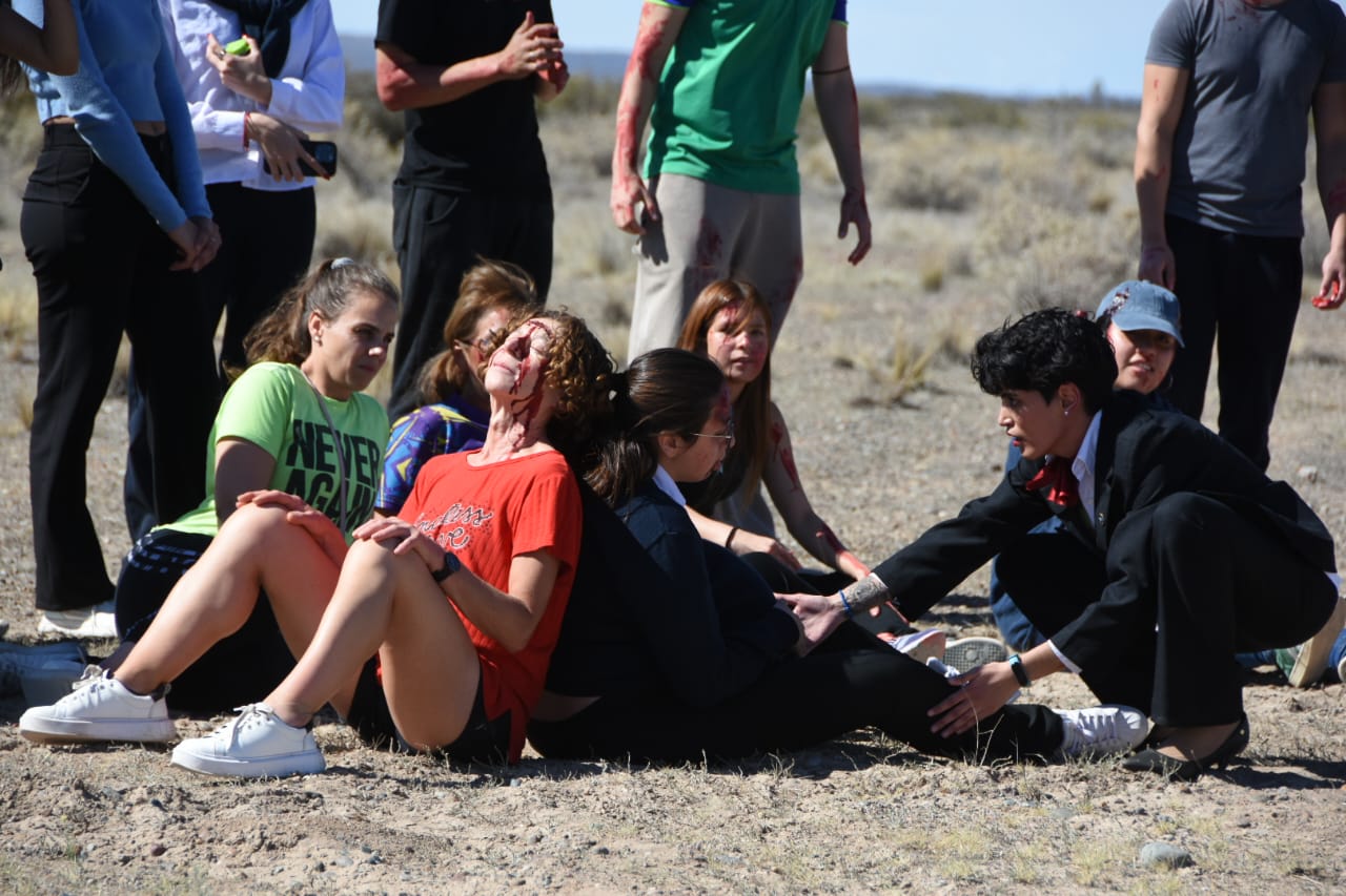 La jornada reunió a voluntarios de Trelew, Madryn, Dolavon y Gaiman, además de maquilladores y actores aficionados que dieron realismo a la escena. “Somos todos voluntarios, y la idea es que cada instancia sea una oportunidad de aprendizaje colectivo”, destacó Lorena Coria, vicepresidenta de CEPA.