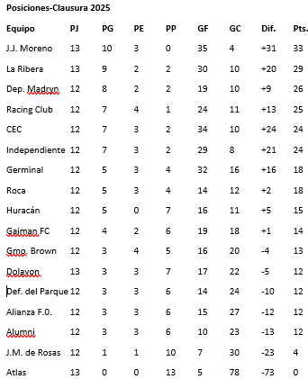 Concluyó la fecha 13 del Clausura masculino de la Liga del Valle, con sendos triunfos de Deportivo Roca y Dolavon. El equipo capitalino venció por 3-0 a Juan Manuel de Rosas en el Polideportivo Sur con tantos de Alexander Chacano (2) y Néstor Anitpán, mientras que el "Verde" derrotó por 2-0 a Atlas, con goles de Paul Cayunao y Máximo Suazo.