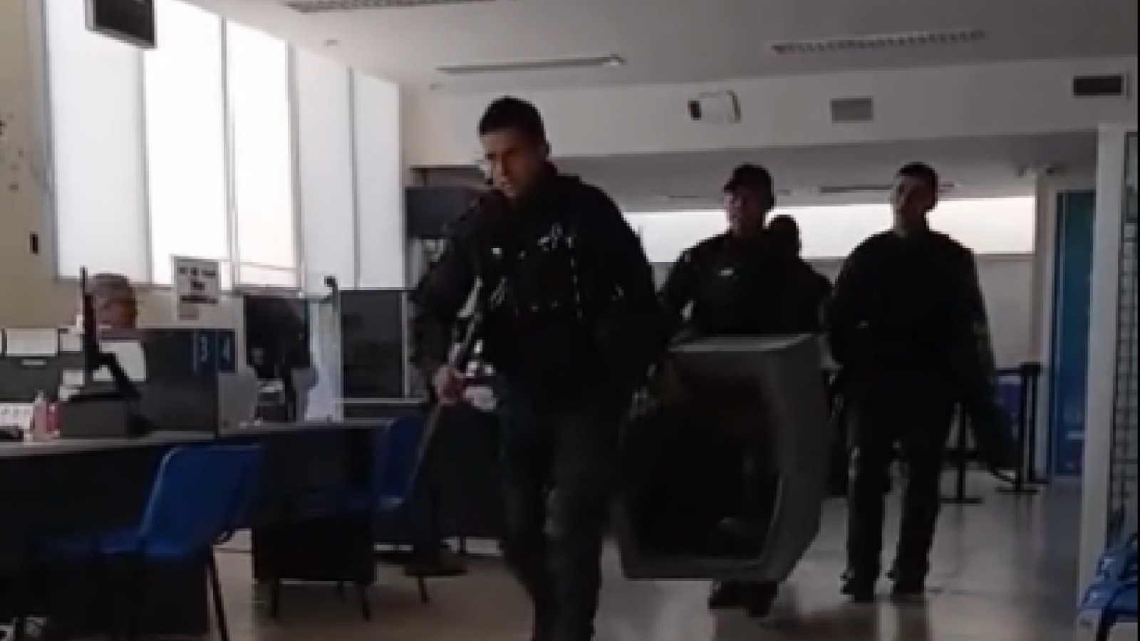 Para sorpresa de los trabajadoresde las oficinas de la entidad, ubicadas en la calle 9 de Julio de la ciudad valletana, se dispuso una fuerte presencia policial con al menos 30 efectivos, entre ellos de la División Canes, que con escudos y armas ingresaron al edificioy caminaron entre los escritorios.