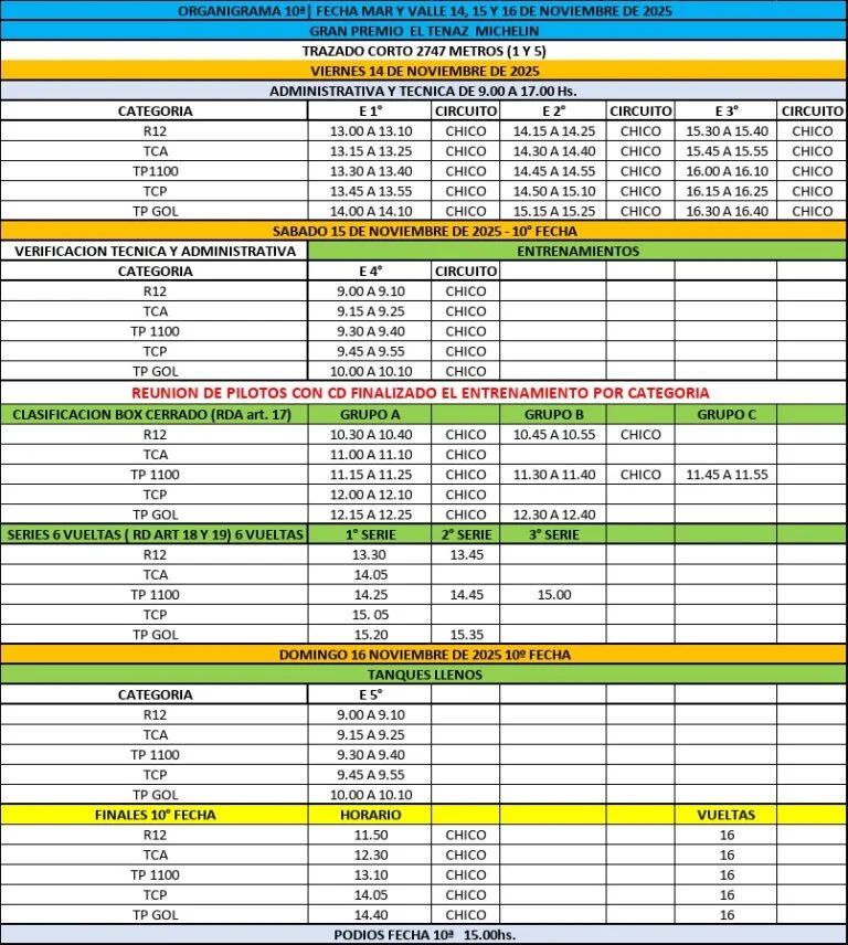 Cuando este viernes comiencen los entrenamientos oficiales, el automovilismo provincial comenzará a desandar la carrera del año, no por ser la última, sino porque definirá los títulos en las cinco categorías que integran el calendario de pista: el TC Patagónico, el TP 1.100, la Gol 1.6, el TC Austral y la Renault 12.