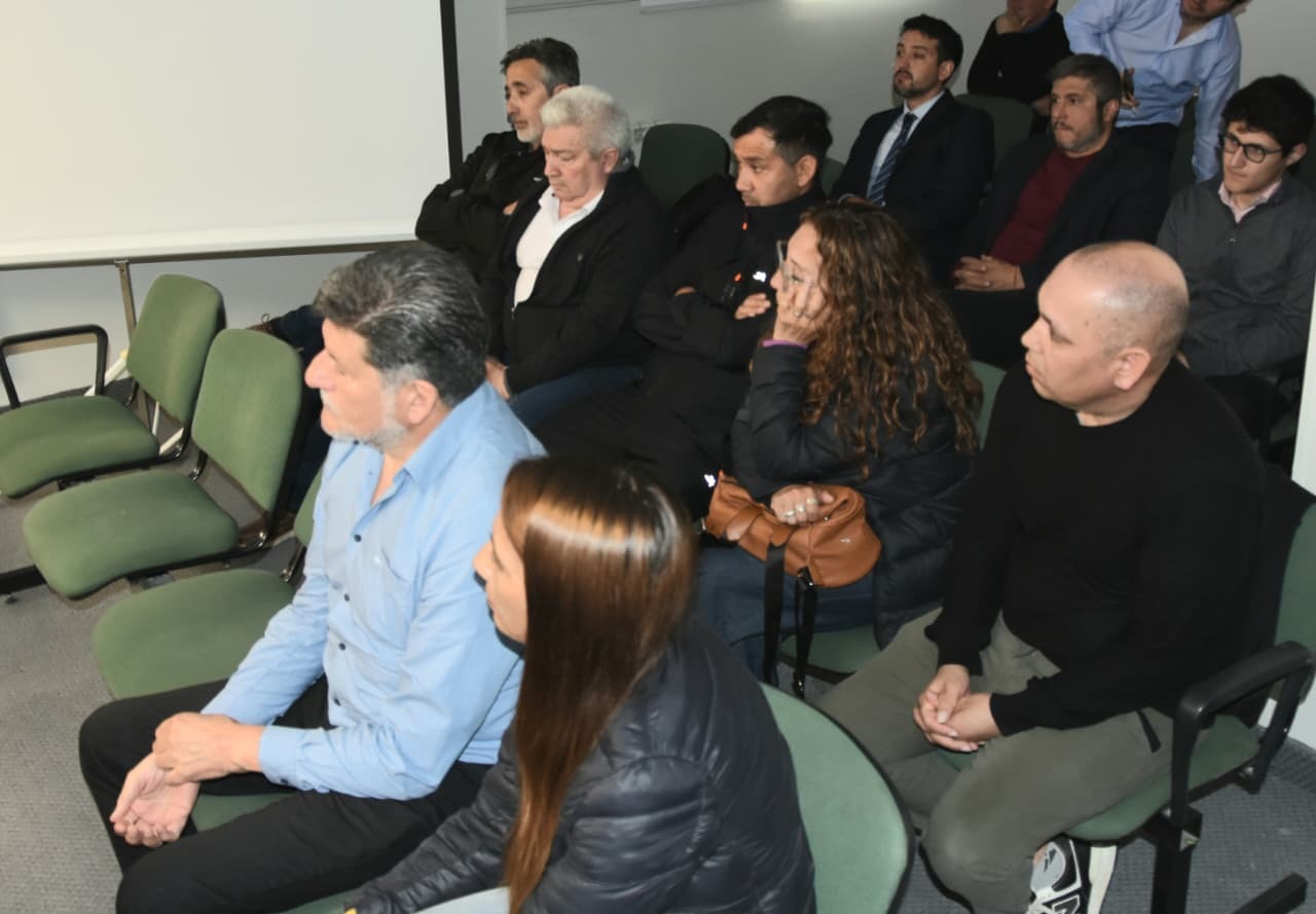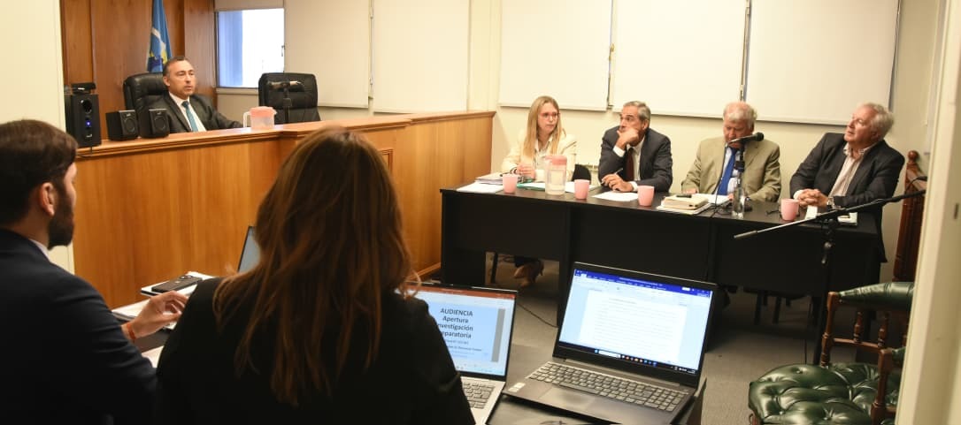 Aunque la pantalla en la sala de audiencias estaba preparada, el juez escuchó la queja de la defensora Romina Rowlands y no permitió a la fiscal reproducir los audios de WhatsApp enviados entre los 5 exfuncionarios y los dos comerciantes. Consideró que es prueba que debe conocerse recién en un juicio oral y público.