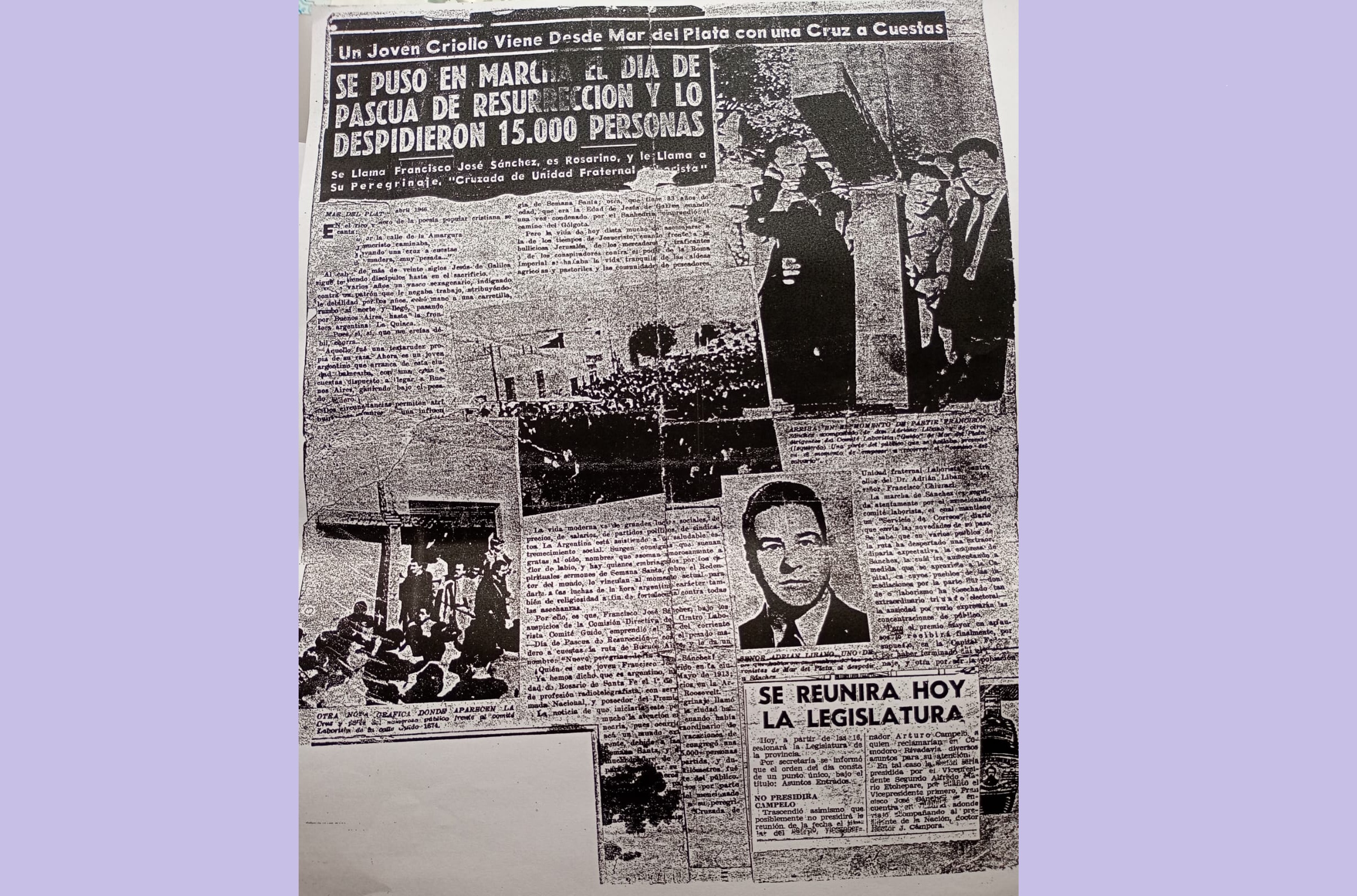 El domingo de Pascuas 21 de abril de 1946, desde el local del Partido Laborista de Mar del Plata, en la calle Guido 1674, Francisco José Sánchez inicia la “Cruzada de Unidad Fraternal Laborista”. Una multitud estimada en quince mil personas lo alentó y despidió en su marcha con la cruz de 56 kilos que construyó con amigos, “más los atuendos y ropas que sumaban 9 kilos más, agregados al frío, la lluvia, el viento y las llagas de los pies, producidas por las ampollas al caminar de dos a tres leguas por día, calculando de doce a catorce horas diarias (…).”