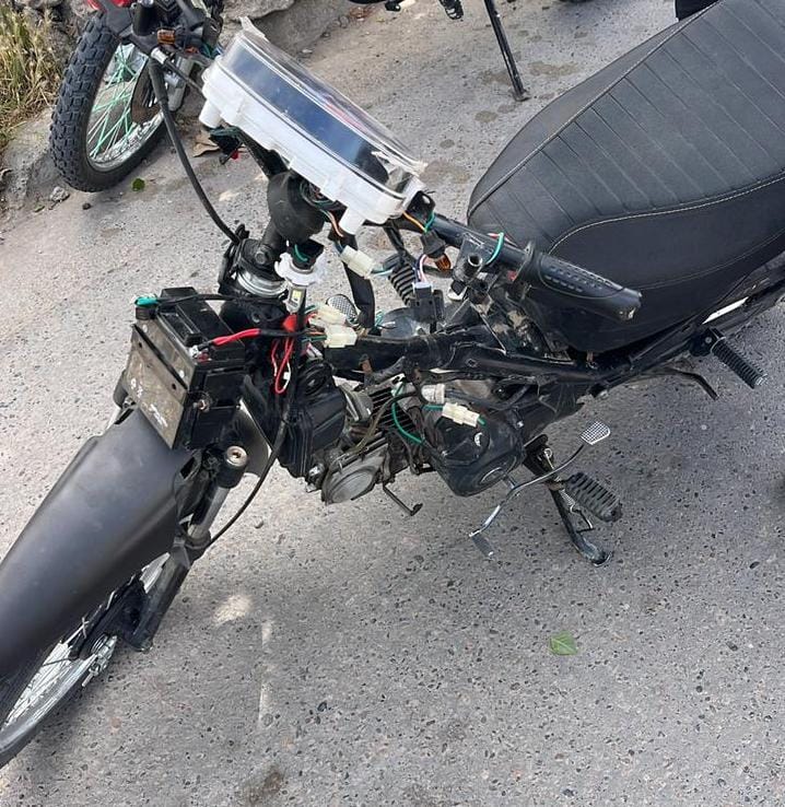 Al percatarse de la presencia policial, los individuos se descartaron rápidamente de una moto Zanella, modelo 110, sin patente e ingresaron a un domicilio.