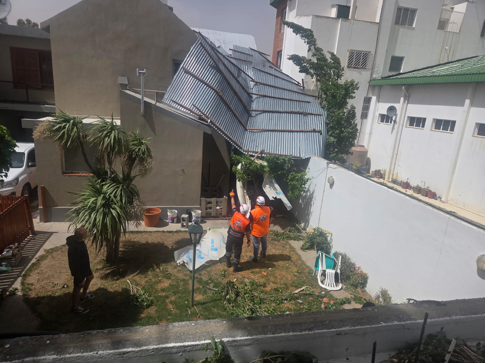 Aumentaron durante la tardelos desprendimientos de techos y partes de construcción que a su vez, derivaron en situaciones de mayor riesgo. Los elementos dañaron severamente postes cuya caídaafectó vehículos y bienes personales. La caída de árboles también resultó el principal factor de derivó en el corte de agua general por falta de energía.