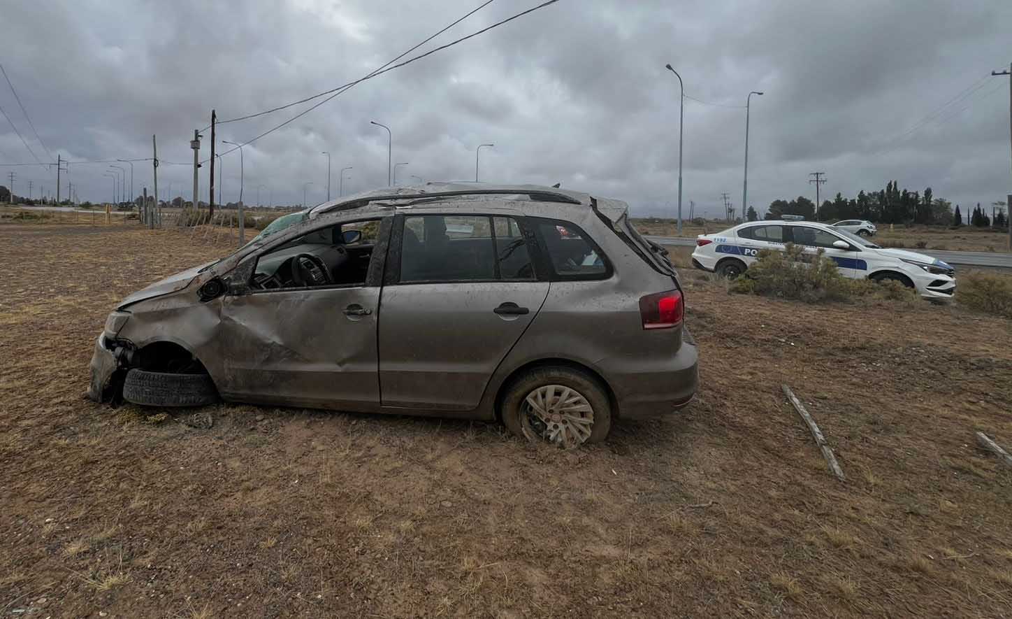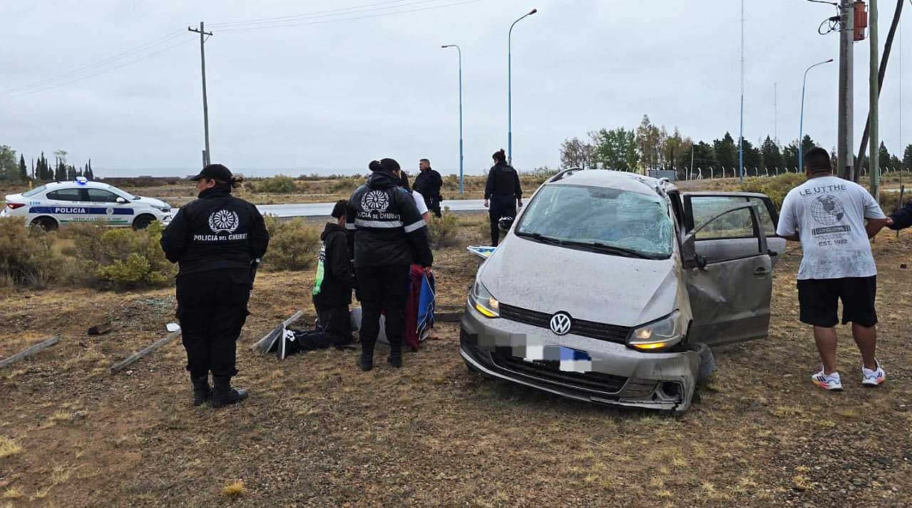 Un accidente se produjo este jueves cerca de las 08:00horas de la mañana cuando una Volkswagen Suran, que se dirigía de Trelew a Gaiman con cuatro personas en su interior, derrapó y volcó sobre Ruta 25 en el acceso oeste de la ciudad.