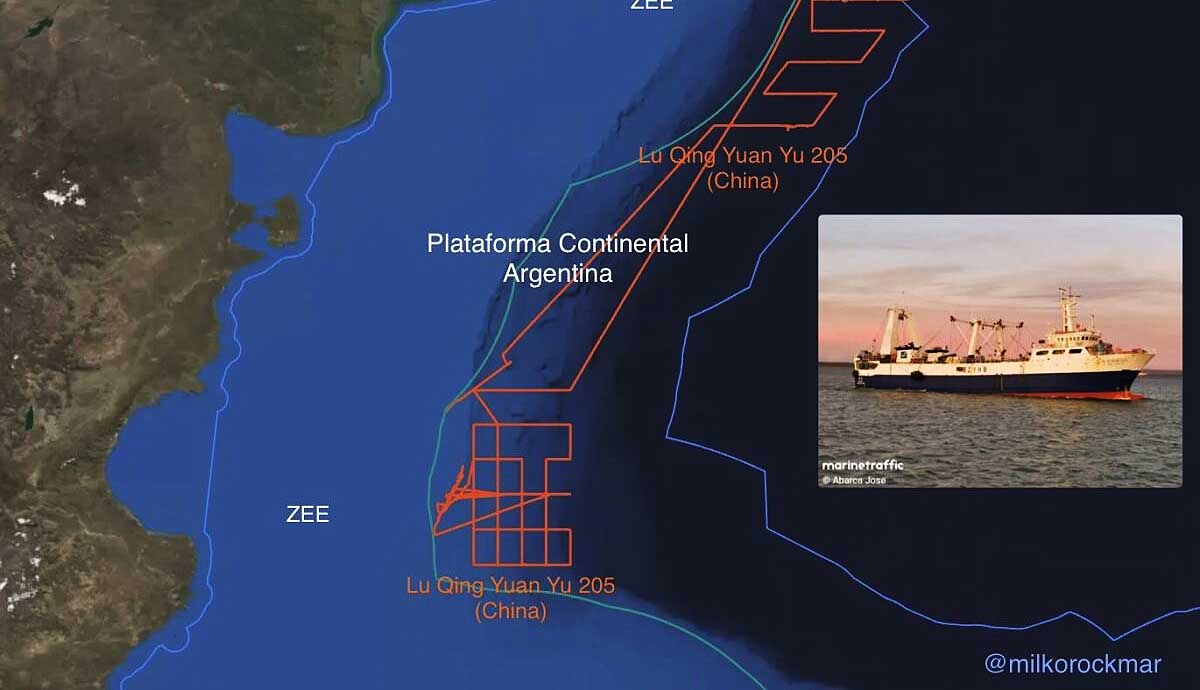 El buque chino Lu Qing Yuan Yu 205, perteneciente a una flota subsidiada por el Estado chino, fue detectado nuevamente realizando maniobras compatibles con tareas de prospección dentro de la Plataforma Continental Argentina, un área donde el país ejerce derechos soberanos exclusivos.