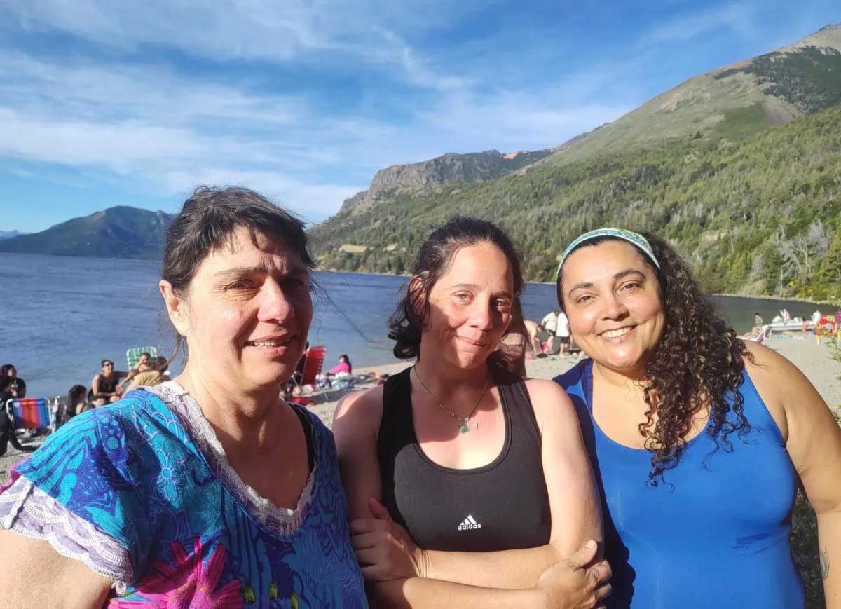 El hecho se dio este domingo por la tarde en la costa del Lago Gutiérrez, donde miles de personas coparon las playas. Un grupo de 7 amigas decidió compartir un momento de playa y mates, entre ellas, Cecilia Marina Cavalie, profesora de Educación Física y directora de la escuela de Educación Acuática Corpo Bebés, Graciela Altieri, terapeuta y Nadia Fleitas también profesora de natación.
