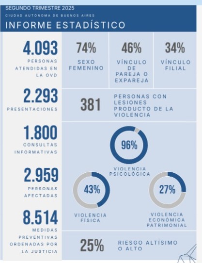 Asimismo, la OVD dio respuesta a 1.800 consultas informativas, la mayoría realizadas por mujeres (69%), un 11% más que en el segundo trimestre de 2024.