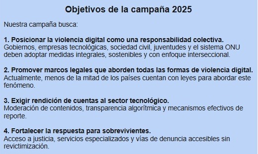 Este año 2025, la campaña global 16 Días de Activismo contra la Violencia de Género se centra en una de las expresiones de violencia que se viene incrementado aceleradamente: la violencia digital contra todas las mujeres y niñas.