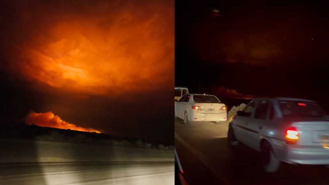 Una insólita situación se produjo este miércoles al filo de la medianoche en cercanías a Aeropuerto Viejo de Trelew, cuando sobre la calzada de Ruta 25 se formó una larga fila de vehículos para “avistar” el incendio de campos que teñía de rojo el cielo nocturno.