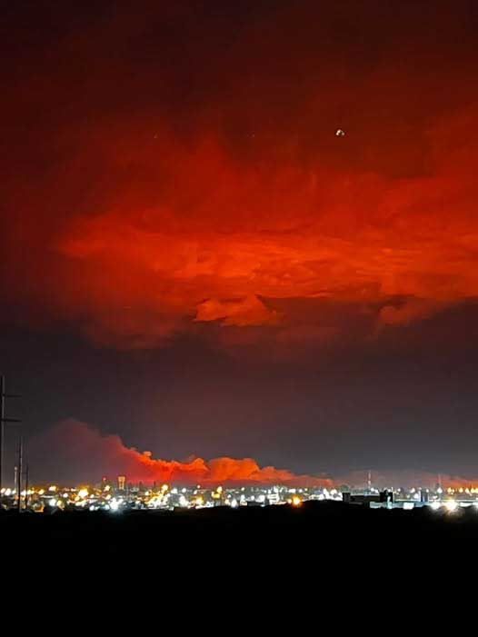 El llamativo efecto sobre las nubes se podía apreciar desde cualquier punto de la ciudad y rápidamente las redes se llenaron de imágenes nocturnas con un cielo apocalíptico.