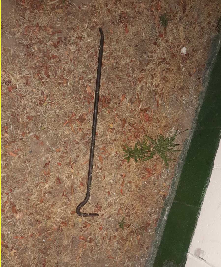 Los uniformados inspeccionaron las instalaciones y comprobaron que una de sus oficinas poseía su puerta ingreso violentada, advirtiendo que en el suelo había elementos electrónicos tirados.En la parte exterior del predio se pudo encontrar una barreta de hierro usada para romper la cerradura, además de comprobarse que un alambre de púas perimetral había sido cortado en sus extremos.